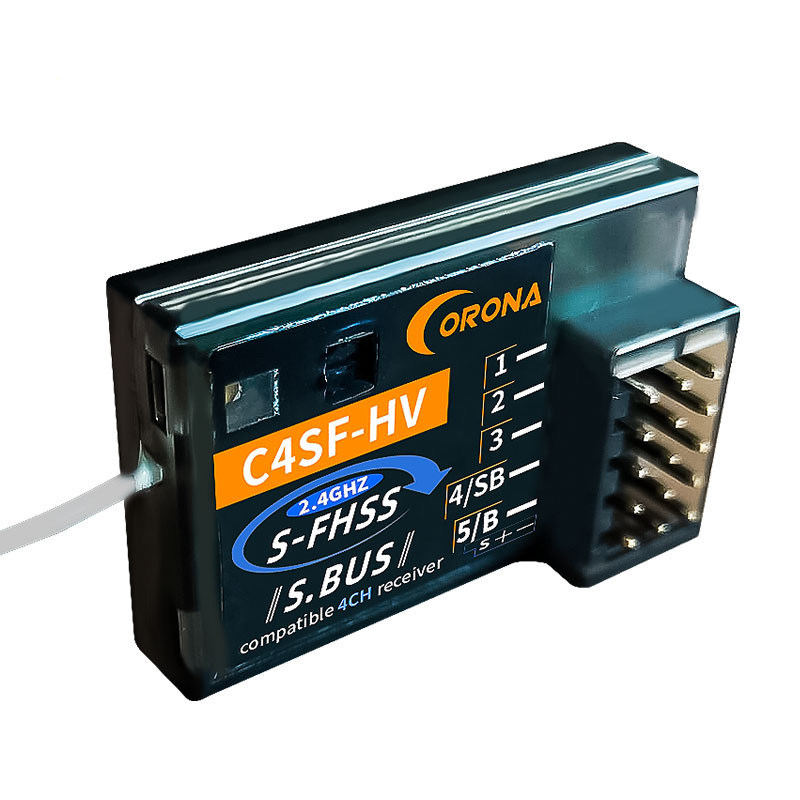 코로나 2.4GHz S-FHSS / FHSS 호환성이 있는 수신기는 공기계 T4YF,T6J,T6K,T8J,T10J, T14SG, T18MZ,T18SZ 또는 표면 시스템 3PL,T3PRKA와 같은 위스프우타바 S-FHSS / FHSS 2.4GHz 송신기를 사용하도록 설계됩니다, 4PLS,T4PX,T4GRS S-FHSS 하에 / FHSS가 방식을 프로토콜화합니다.